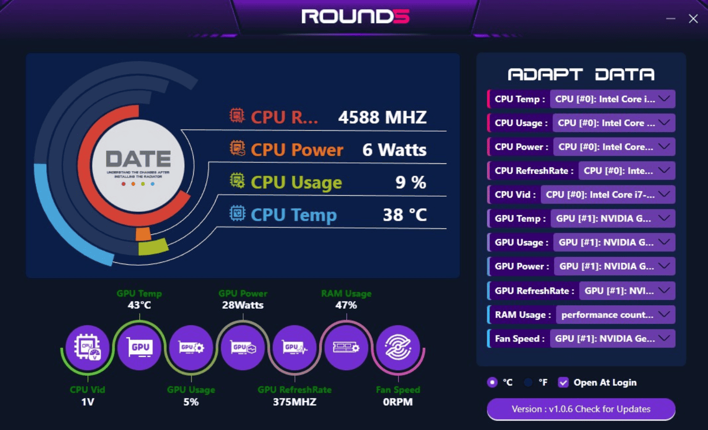 Se você adquiriu o water cooler Boreah da ROUND5, com o software exclusivo da ROUND5, é possível exibir em tempo real a temperatura da CPU no display integrado, além de ajustar configurações para uma experiência ainda mais personalizada.